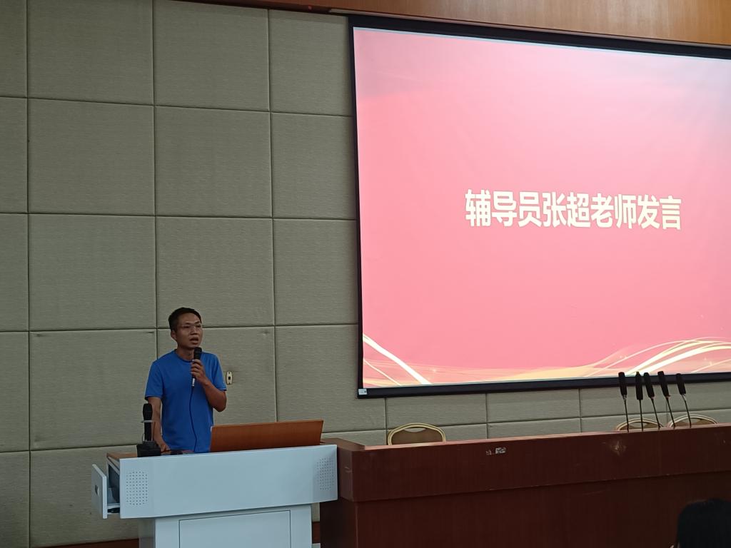 辅导员张超老师发言,他表达对2021级专升本新生的欢迎,希望各位新生好好学习,天天向上,收获成长,并表示如果新生们遇到问题,要及时与辅导员沟通并解决,引导新生尽快适应校园生活,顺利完成学业。最后,他希望新生们珍惜来之不易的求学机会。