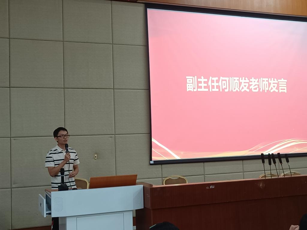 学工办副主任何顺发老师在给新生的寄语中,引用平日常讲的“静”音状态,向大家解释其中奥妙,其一是宁静,希望同学们洗去浮躁,安心学习;其二是干净,希望同学们光明磊落,问心无愧;其三是尊敬,希望同学们尊敬师长,尊敬自己,通过自身的努力赢得更多人的尊敬。因为热爱,所以选择;因为选择,所以负责,他希望新生怀着初心和热爱,尽己所能提升自我。