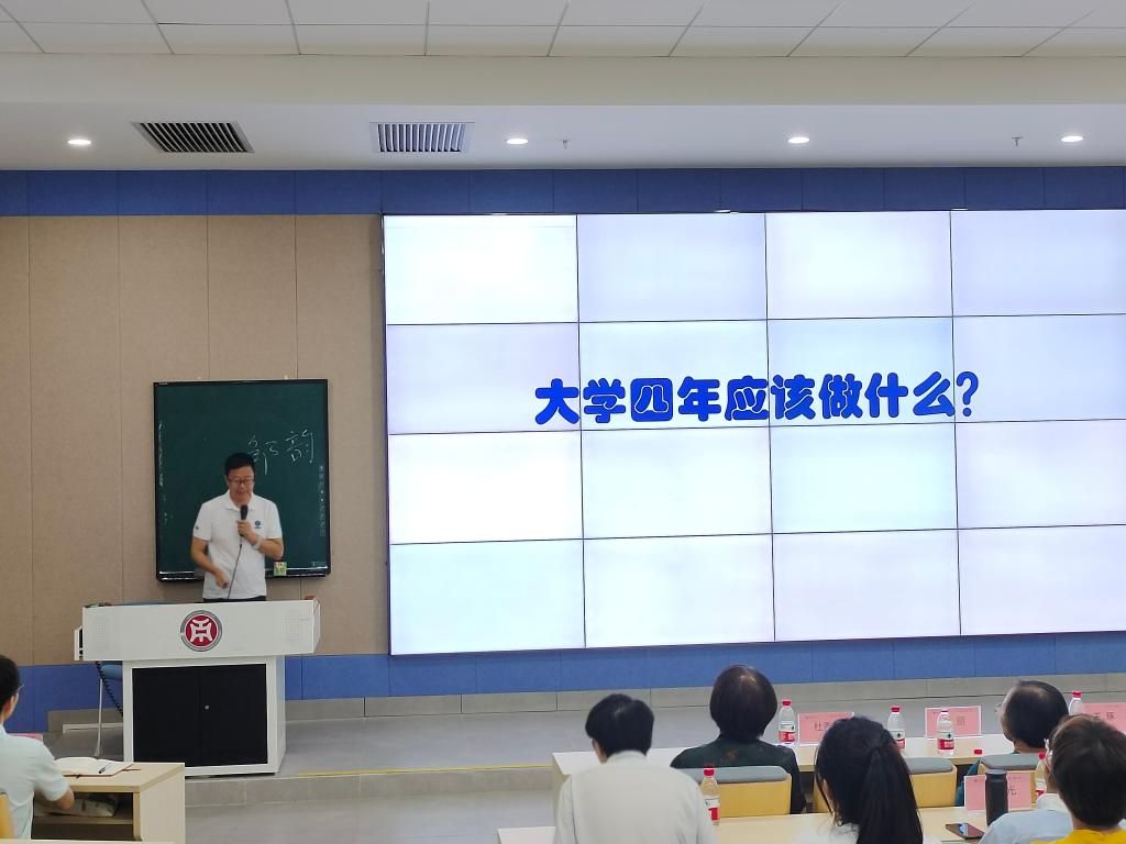 翻译系主任贾秀海教授向新生们提出大学四年应确立目标,增强语言学习能力,积极考取证书,提高综合素质,同时要有自己的学业规划,为自己的目标不懈奋斗。