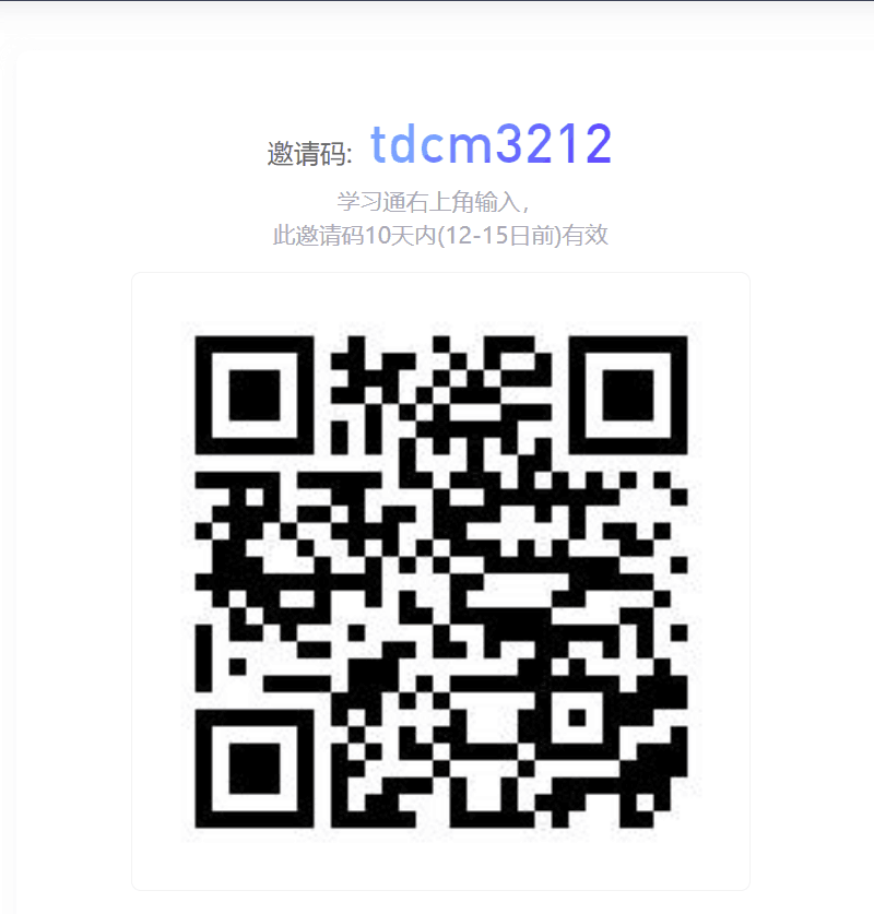 (1)超星学习通使用超星学习通APP,首页右上角扫以下二维码或输入邀请码:tdcm3212,加入班级。