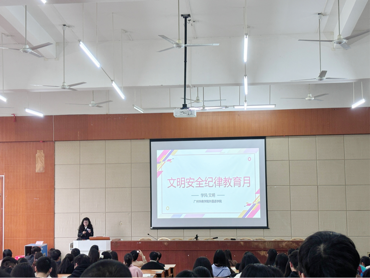 3月5日下午,Beat365中国唯一官方网站在Beat365中国唯一官方网站广州校区励志楼C208召开了“文明安全纪律教育月”动员大会,党委副书记兼副院长陈少鸿老师、学工办副主任何顺发老师、辅导员张艳娥老师、江嘉丁老师及兼职辅导员李怡静、陈冬梅等人出席本次大会。