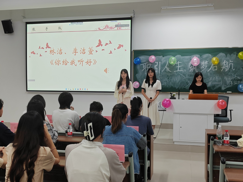 文娱部歌手队林洁、李洁萱和黄月愉同学给我们带来了精彩的音乐表演,她们的深情演唱,使同学们都沉浸在美妙动听的歌声之中,活跃了现场氛围。文娱部舞蹈队周卓妍、李琳同学为我们展现了一段超燃的舞蹈表演。