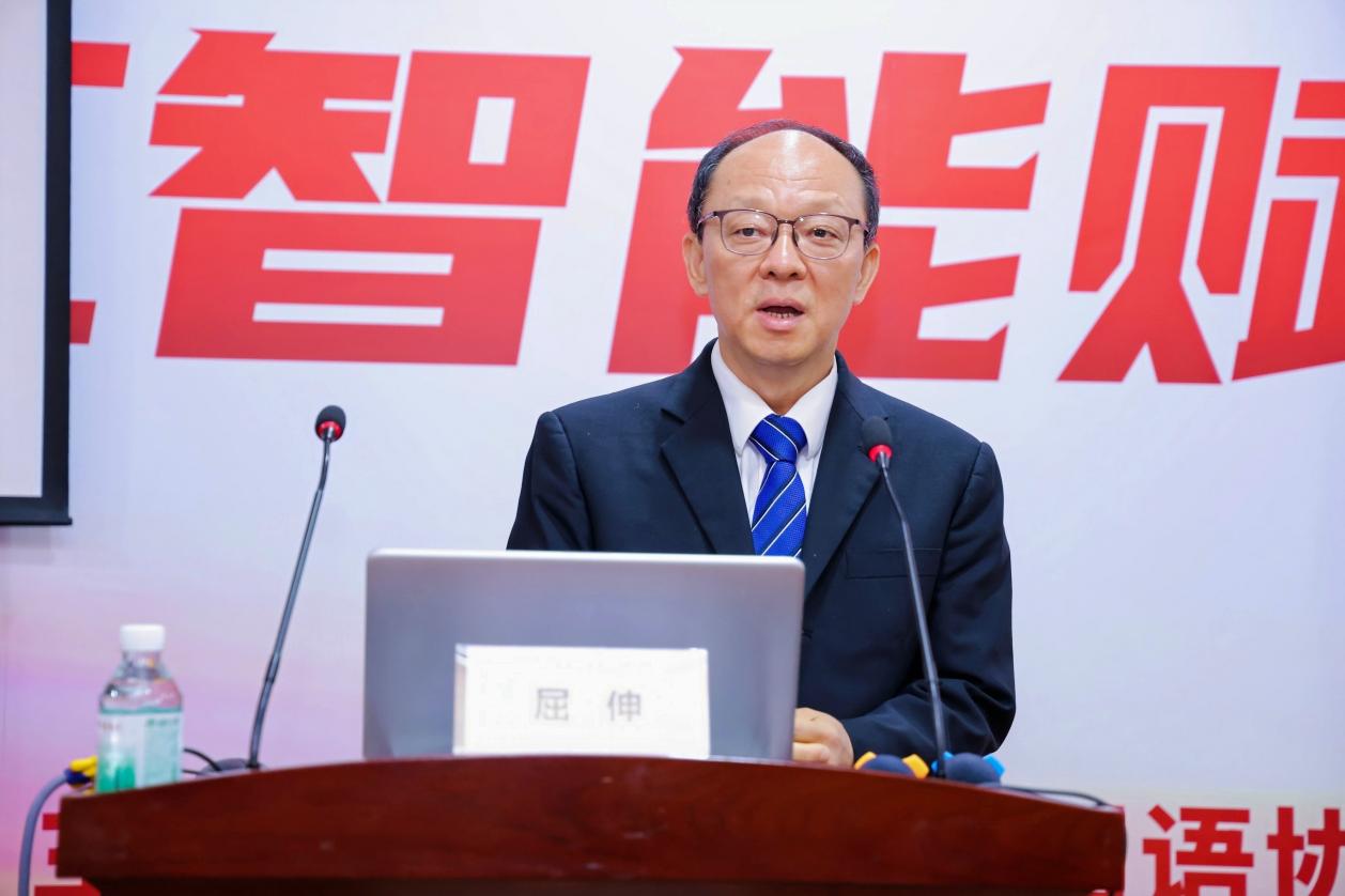 会议第三项议程由广东省翻译协会副会长屈伸译审发言。他指出教师与学生在使用AI技术时应该用之有道,不要盲目使用或过度依赖,同时应该以包容、开放的心态接受AI在各方面带来的重塑。本次研讨会彰显了Beat365中国唯一官方网站紧跟时代,守正创新的责任与担当,他希望通过本次研讨会与会嘉宾能找到使用人工智能的度量衡。最后他预祝本次研讨会圆满成功。